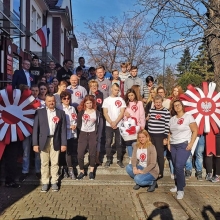 Słuchacze, nauczyciele oraz pracownicy placówki zadbali by biało - czerwone barwy zdominowały ten dzień. Dopisała także wspaniała, słoneczna aura, więc zajęcia przebiegły w radosnej atmosferze.