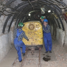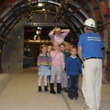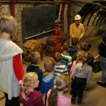Przedszkolaki zwiedzili sztolnię ćwiczebną Rybnickiego Centrum Edukacji Zawodowej – CKUoP, z zainteresowaniem przyglądały się niezwykłym maszynom jak przenośnikowi taśmowemu i zgrzebłowemu, kombajnowi górniczemu i wielu innym. Dzieciom przekazano w bardzo przystępnej formie uniwersalną prawdę o ciężkiej pracy w kopalni. Na zakończenie każdy przedszkolak wziął udział w ceremonii pasowania na młodszego górnika oraz otrzymał mały upominek.