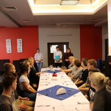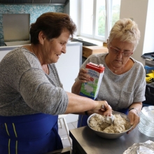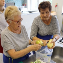 Prowadząca, jako doradca dietetyczny zapoznała uczestników z zasadami zdrowego żywienia. Okazało się, że jedzenie to nie tylko sprawa żołądka, ale głównie głowy. Pani Słabkowska przekonywała, że to w głowie rodzą się pomysły na zdrowe zakupy i ciekawe potrawy. Uczestnicy przygotowali smaczne i proste dania. Ważnym elementem spotkania była wspólna degustacja przygotowanych potraw. Wszyscy chętnie dzielili się wrażeniami.