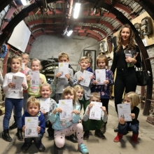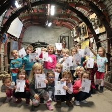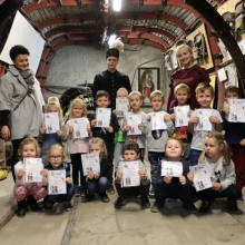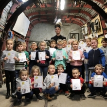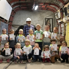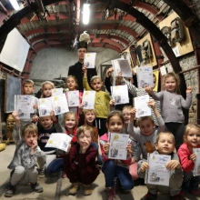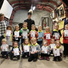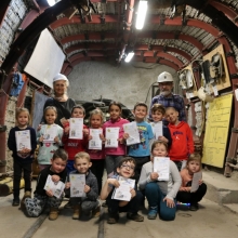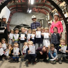 Każdy przedszkolak pod koniec swojej przygody otrzymał słodki upominek oraz certyfikat młodszego gwarka. Wszystkie grupy miały okazję zrobić sobie zdjęcie na tle naszej sztolni.