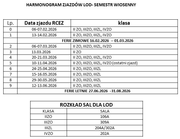 HARMONOGRAM ZJAZDÓW SEMESTR II